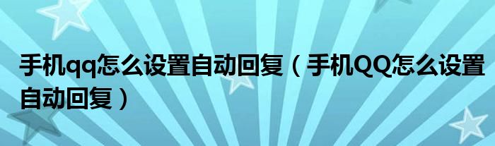 手机qq怎么设置自动回复(手机QQ怎么设置自动回复)