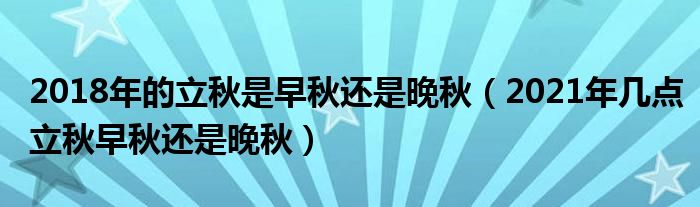2018年的立秋是早秋还是晚秋(2021年几点立秋早秋还是晚秋)