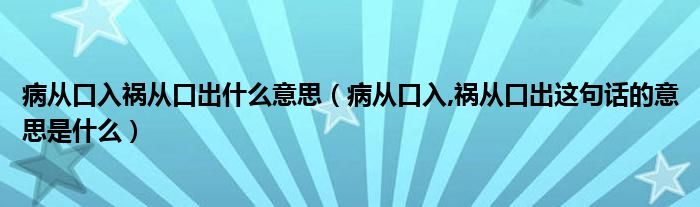 病从口入祸从口出什么意思(病从口入,祸从口出这句话的意思是什么)