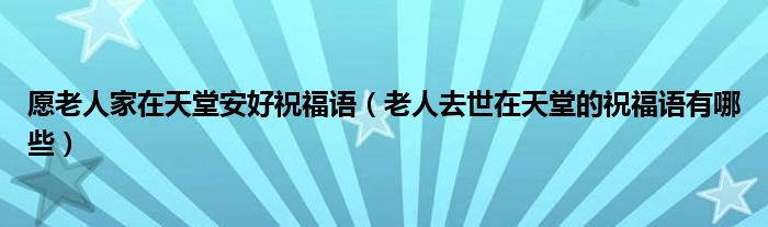 大家好,小知来为大家解答以上问题。愿老人家在天堂安好祝福语,老人去世在天堂的祝福语有哪些这个很多人还不知道,现在让我们一起来看看吧!