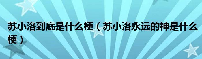 苏小洛到底是什么梗(苏小洛永远的神是什么梗)