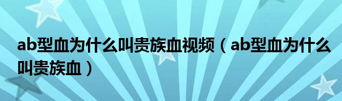 ab型血为什么叫贵族血视频(ab型血为什么叫贵族血)