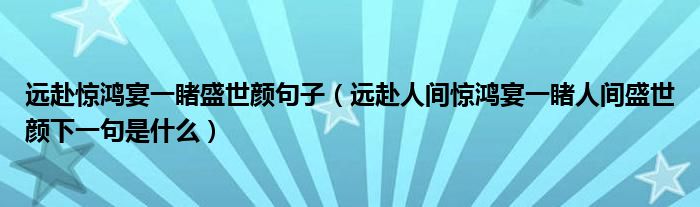 远赴惊鸿宴一睹盛世颜句子(远赴人间惊鸿宴一睹人间盛世颜下一句是什么)