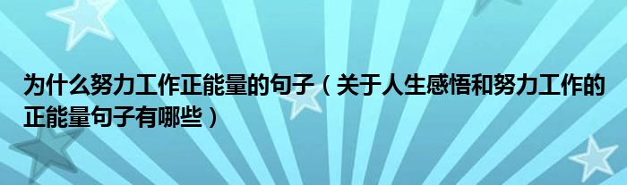 为什么努力工作正能量的句子(关于人生感悟和努力工作的正能量句子有哪些)