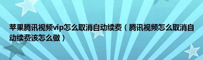 苹果腾讯视频vip怎么取消自动续费(腾讯视频怎么取消自动续费该怎么做)