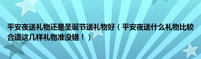 平安夜送礼物还是圣诞节送礼物好(平安夜送什么礼物比较合适这几样礼物准没错!)