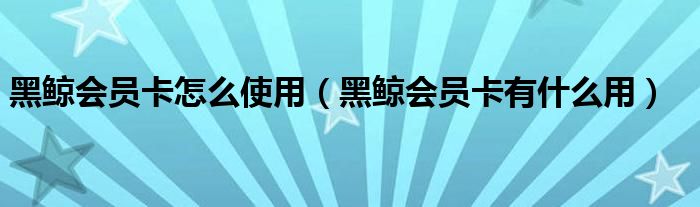 黑鲸会员卡怎么使用(黑鲸会员卡有什么用)