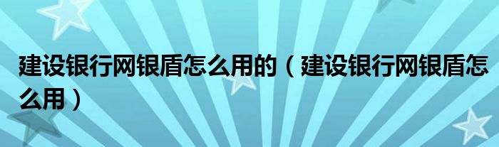建设银行网银盾怎么用的(建设银行网银盾怎么用)