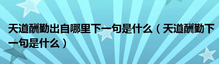 天道酬勤出自哪里下一句是什么(天道酬勤下一句是什么)