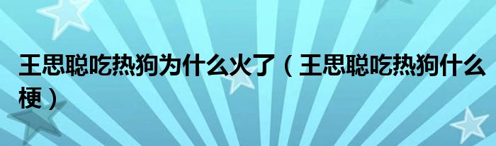 大家好,小知来为大家解答以上问题。王思聪吃热狗为什么火了,王思聪吃热狗什么梗这个很多人还不知道,现在让我们一起来看看吧!