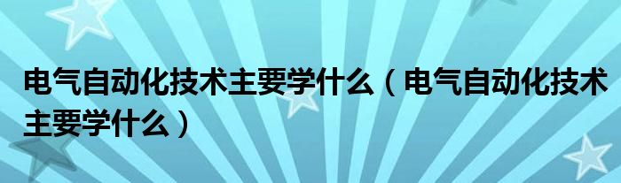 电气自动化技术主要学什么(电气自动化技术主要学什么)