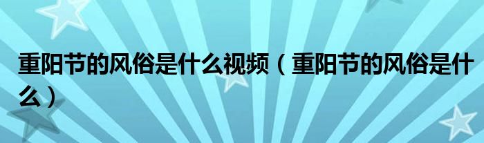 重阳节的风俗是什么视频(重阳节的风俗是什么)
