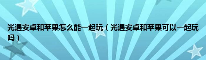大家好,小知来为大家解答以上问题。光遇安卓和苹果怎么能一起玩,光遇安卓和苹果可以一起玩吗这个很多人还不知道,现在让我们一起来看看吧!