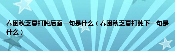 春困秋乏夏打盹后面一句是什么(春困秋乏夏打盹下一句是什么)