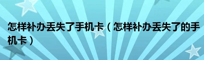 怎样补办丢失了手机卡(怎样补办丢失了的手机卡)