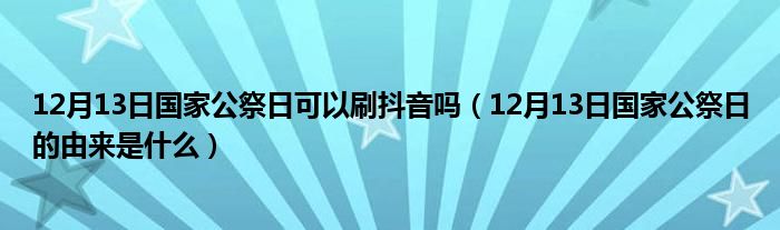 大家好,小知来为大家解答以上问题。12月13日国家公祭日可以刷抖音吗,12月13日国家公祭日的由来是什么这个很多人还不知道,现在让我们一起来看看吧!
