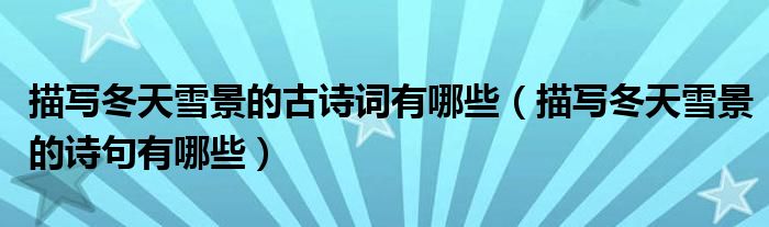 描写冬天雪景的古诗词有哪些(描写冬天雪景的诗句有哪些)