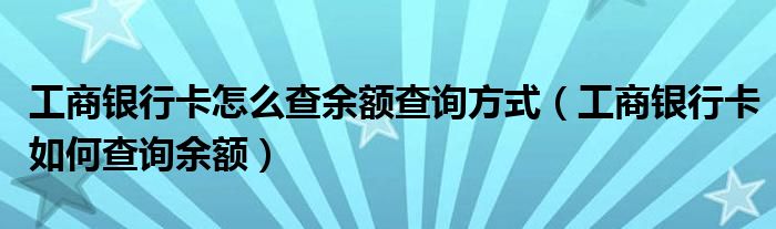 工商银行卡怎么查余额查询方式(工商银行卡如何查询余额)
