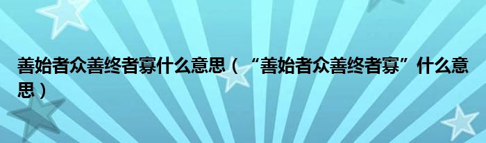 善始者众善终者寡什么意思(“善始者众善终者寡”什么意思)
