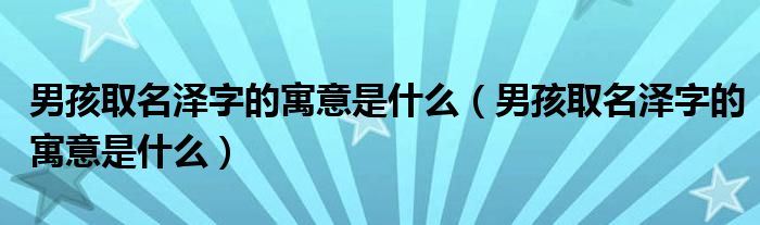 男孩取名泽字的寓意是什么(男孩取名泽字的寓意是什么)