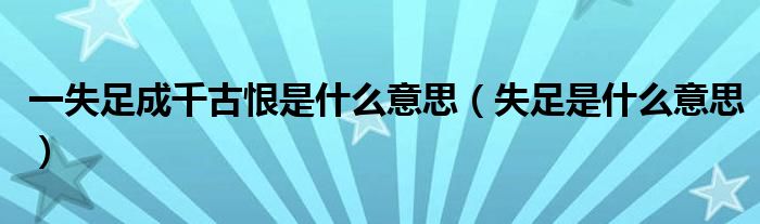 大家好,小知来为大家解答以上问题。一失足成千古恨是什么意思,失足是什么意思这个很多人还不知道,现在让我们一起来看看吧!