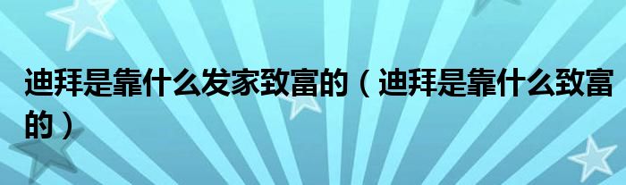 迪拜是靠什么发家致富的(迪拜是靠什么致富的)
