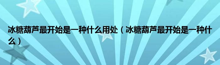 冰糖葫芦最开始是一种什么用处(冰糖葫芦最开始是一种什么)
