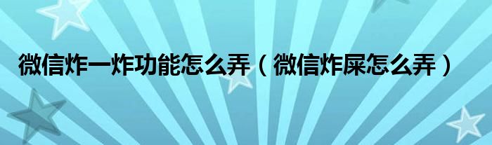 微信炸一炸功能怎么弄(微信炸屎怎么弄)