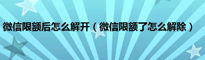 大家好,小知来为大家解答以上问题。微信限额后怎么解开,微信限额了怎么解除这个很多人还不知道,现在让我们一起来看看吧!