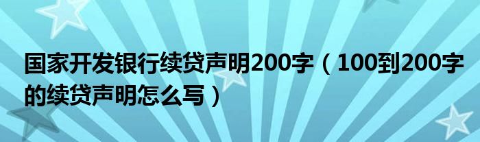 国家开发银行续贷声明200字(100到200字的续贷声明怎么写)