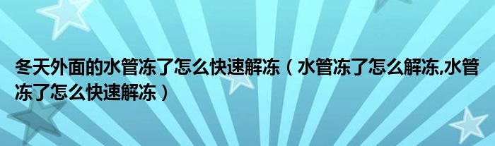 冬天外面的水管冻了怎么快速解冻(水管冻了怎么解冻,水管冻了怎么快速解冻)