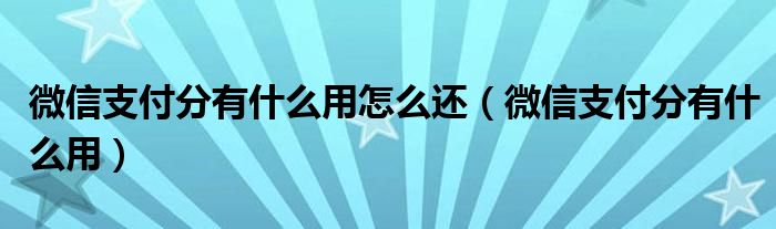 微信支付分有什么用怎么还(微信支付分有什么用)
