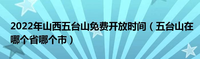 大家好,小知来为大家解答以上问题。2022年山西五台山免费开放时间,五台山在哪个省哪个市这个很多人还不知道,现在让我们一起来看看吧!