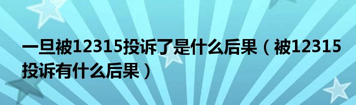一旦被12315投诉了是什么后果(被12315投诉有什么后果)