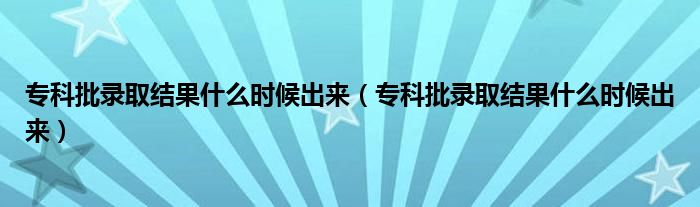 专科批录取结果什么时候出来(专科批录取结果什么时候出来)