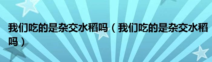 我们吃的是杂交水稻吗(我们吃的是杂交水稻吗)
