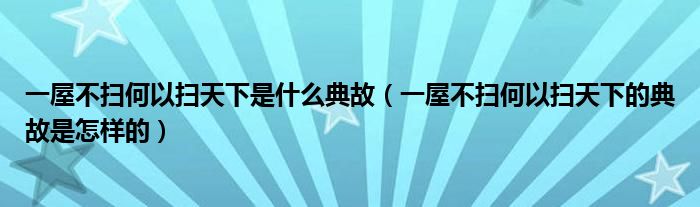 一屋不扫何以扫天下是什么典故(一屋不扫何以扫天下的典故是怎样的)