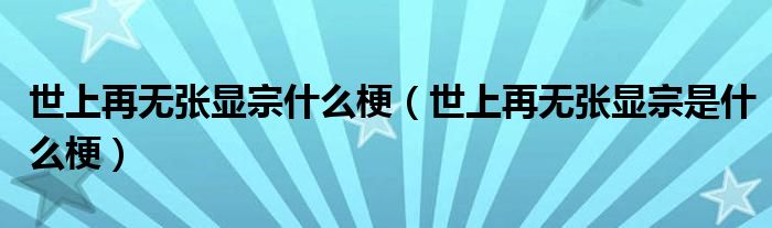 世上再无张显宗什么梗(世上再无张显宗是什么梗)