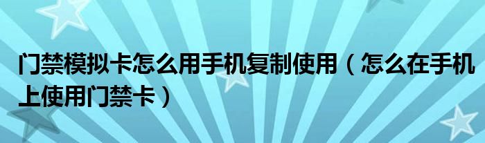 门禁模拟卡怎么用手机复制使用(怎么在手机上使用门禁卡)
