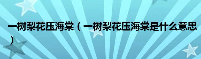 一树梨花压海棠(一树梨花压海棠是什么意思)