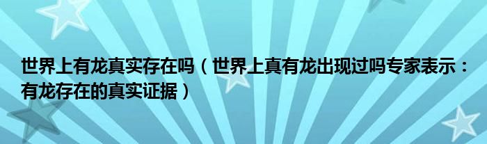 大家好,小知来为大家解答以上问题。世界上有龙真实存在吗,世界上真有龙出现过吗专家表示:有龙存在的真实证据这个很多人还不知道,现在让我们一起来看看吧!