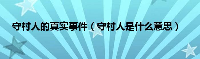 大家好,小知来为大家解答以上问题。守村人的真实事件,守村人是什么意思这个很多人还不知道,现在让我们一起来看看吧!