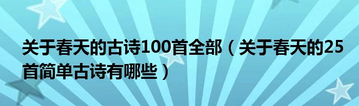 关于春天的古诗100首全部(关于春天的25首简单古诗有哪些)