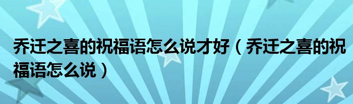 乔迁之喜的祝福语怎么说才好(乔迁之喜的祝福语怎么说)