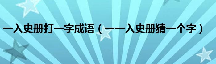 大家好,小知来为大家解答以上问题。一入史册打一字成语,一一入史册猜一个字这个很多人还不知道,现在让我们一起来看看吧!