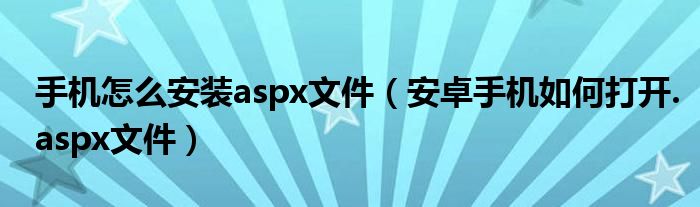 手机怎么安装aspx文件(安卓手机如何打开.aspx文件)