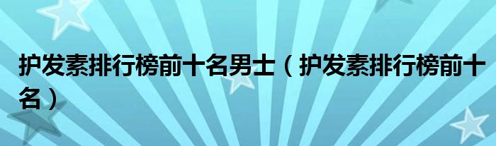 护发素排行榜前十名男士(护发素排行榜前十名)