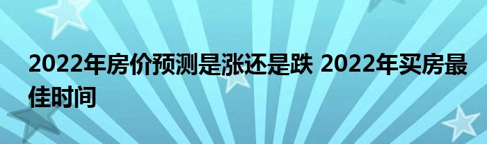 买房,是为了在一个城市里拥有属于自己的家,充满归属感才是幸福,那么选择在2022年买房的话,房价是涨还是跌呢?选择买房的话2022年最佳买房时间是什么时候?和小编一起来详细了解一下吧。