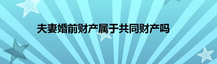 1、夫妻婚前财产不属于共同财产,而属于夫或妻一方所有的财产