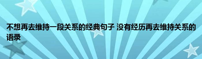 不想再去维持一段关系的经典句子 没有经历再去维持关系的语录